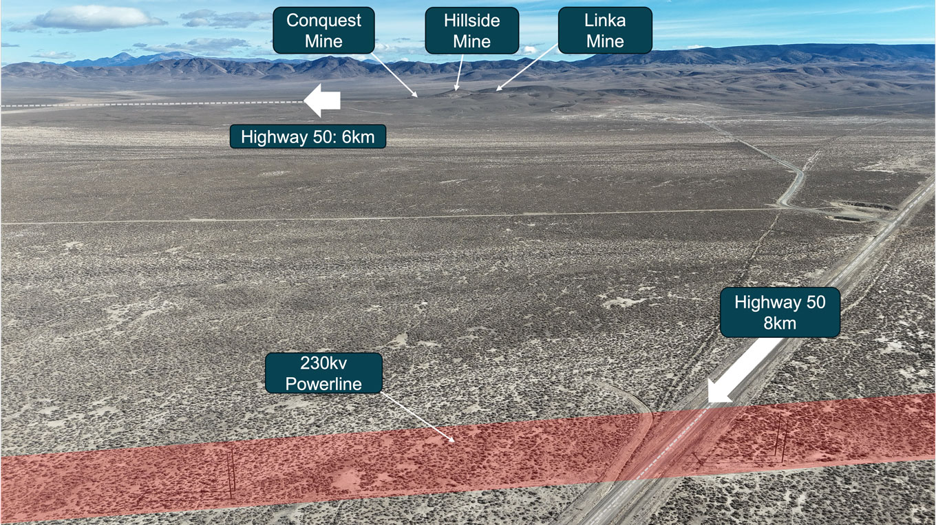 - The project is well-serviced by existing infrastructure, located just 7km south of Highway 50 with excellent road access to the local service hub of Austin (~35km) and Reno International Airport (~310km).